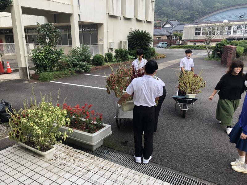環境委員会の子どもたちが朝から花の植え替えのため、活動していました。