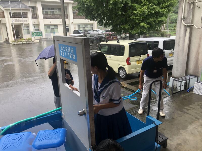 9月4日(木)の3〜6時間目に、防災教育の一環で浸水ドア実験、それに伴う座学を行いました。