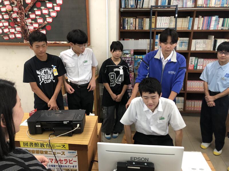 図書委員会では、リニューアルした図書貸出しシステムについてみんなで確認をしていました。