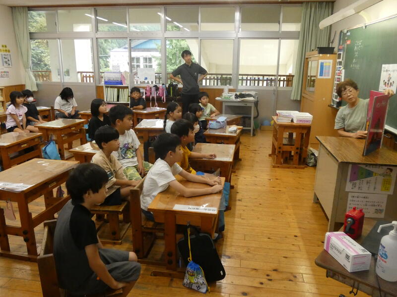 9月11日(木)にちびくまさんによる読み聞かせが実施されました。地域のちびくまさんの方々は、学年に合った本を準備していただきました。子供たちは、前のめりに話されるお話を聞いていました。