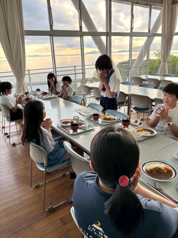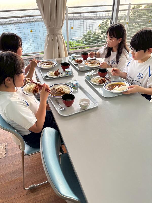 天気が回復してきました。まずは、昼食です。もりもり食べて午後からの活動に備えてほしいです。