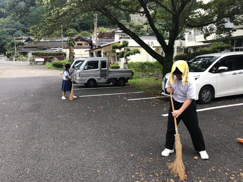 朝から児童生徒会の取組で、あいさつ運動と清掃活動を実施していました。