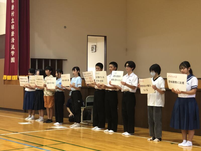 さて、本日は、3年生が総合的な学習の時間を公開し、研究授業を行いました。事後研究会では、講師である県立学校教育局学校安全・安心推進課の課長補佐様、同課指導主事様、球磨教育事務所指導主事様から、貴重なご助言をいただきました。誠にありがとうございました。