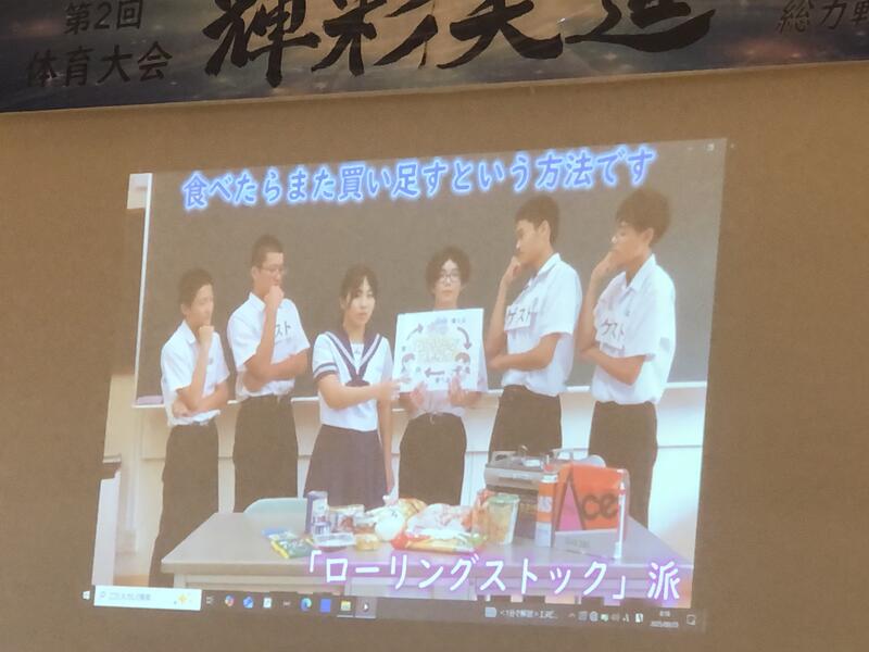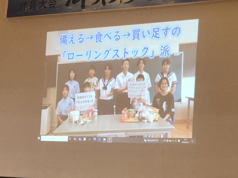 今回の発表では、防災非常食とローリングストックという2つの非常時の食事方法について紹介がありました。