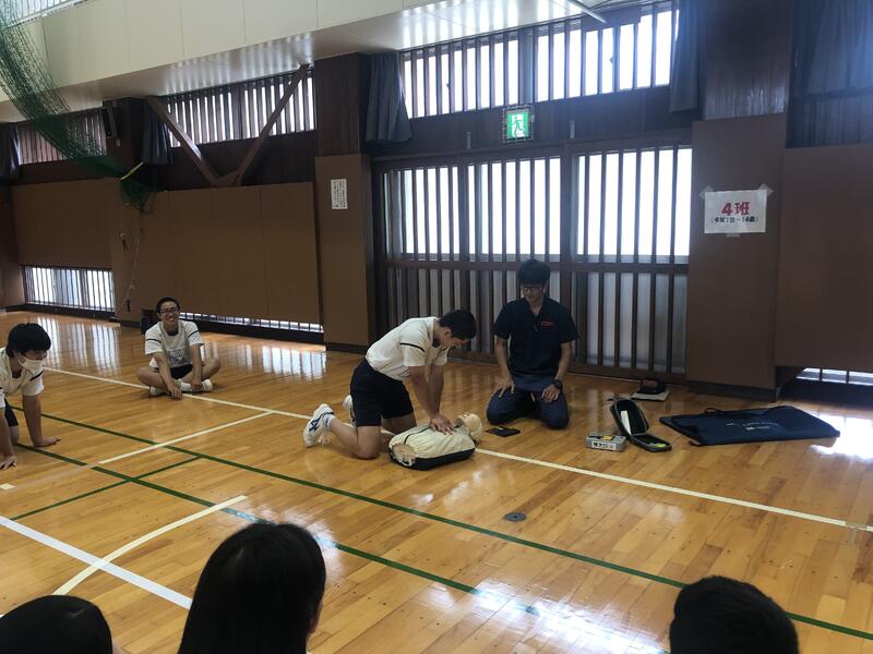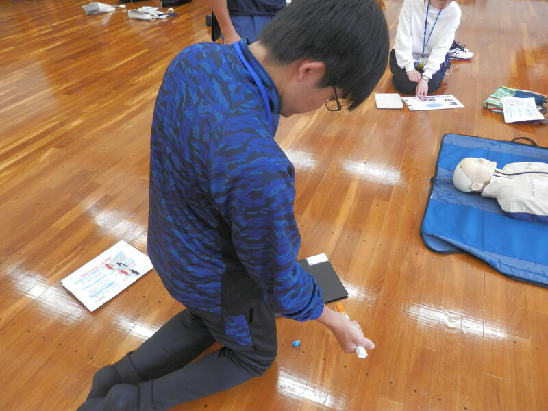 エピペンの使い方、AEDや心肺蘇生法について実践形式の研修となりました。