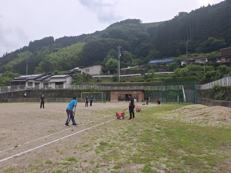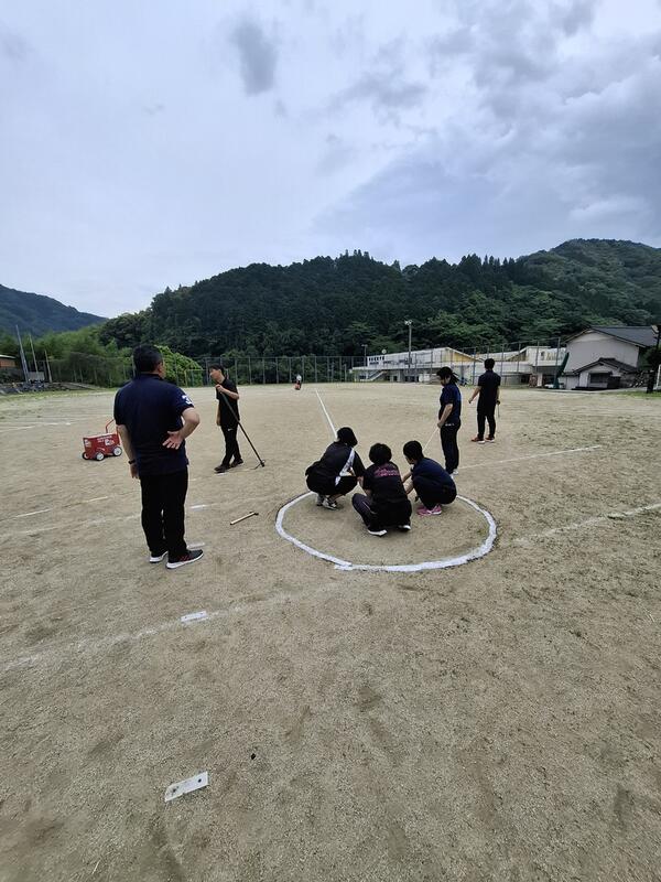 5月29日(木)は1~9年生で新体力テストを実施します。そこで、5月28日(水)に先生方で準備を行いました。写真は、ソフトボール投げの準備の様子です。児童生徒の成長が楽しみです。