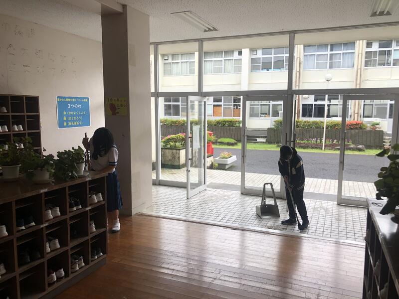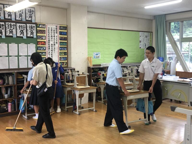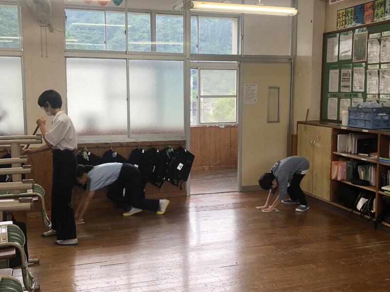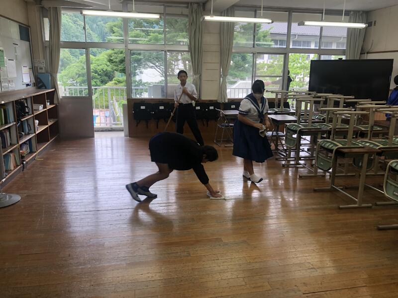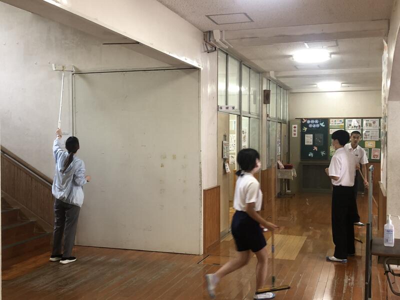 児童生徒は本当によく掃除をします。もちろん、先生方も一緒に掃除に取り組みます。