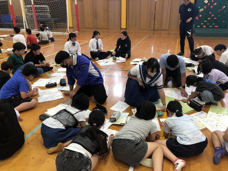 今回は各地区の縦割り班に分かれて、避難場所や避難経路を考えました。