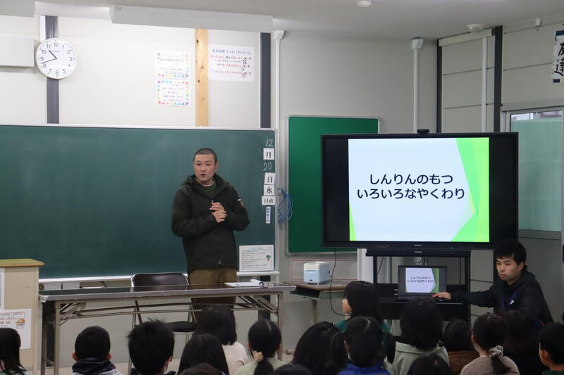 12月20日(水)には、渡小の全児童が参加して森林学習と植林体験を行いました。
