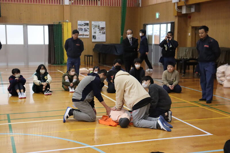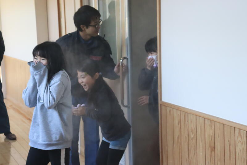 さて、3学期のスタートにあたり、渡小学校と一勝地小学校は避難訓練を同日に行いました。各学校で火災想定は違うものの煙体験は一勝地小学校の家庭科室を使用して全員が体験。子ども救命士講習は低・中・高学年に分かれて実施しました。