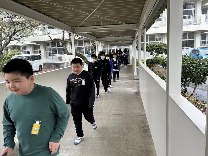 それに伴い、今年度もこの日を登校日に設定し、球磨中、一勝地小、渡小の3校合同による防災学習が実施されました。