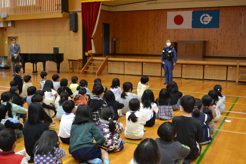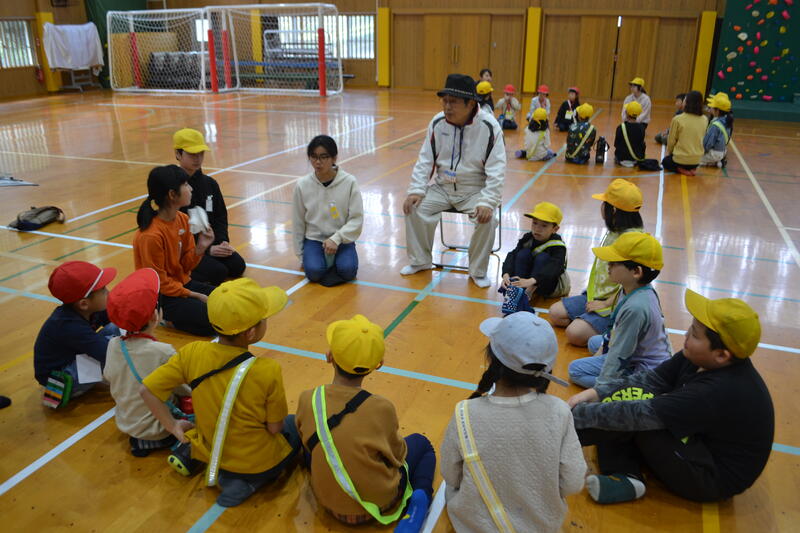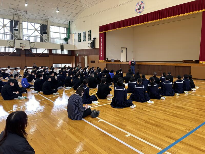入所式を終え、現在、村役場総務課防災管理官の中渡さんの防災講話です。