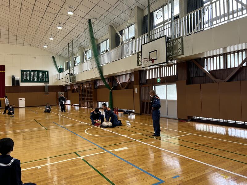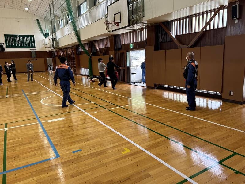 本日(11日)は、8年前に起きた熊本地震と同じ時期に合わせ、地震から火災を想定した避難訓練を行いました。1年生~4年生は3校時、5年生~9年生は4校時に下球磨消防組合 中央消防署 西分署にご協力いただき、避難経路の確認や消火訓練、心肺蘇生法及びAEDの使用方法を学びました。あいにく雨が降りましたので、室内での実施でした。
