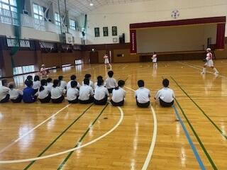 12日(金)、午前中1年生から6年生は縦割りグループで学校周辺をクイズ形式のウオークラリーを行いました。その日の昼食はお弁当をグラウンドで食べました。午後からは1年生から9年生まで南体育館に集まり、1年生と7年生の歓迎会を行いました。学級紹介やじゃんけん列車、だるまさんが〇〇などで楽しく交流することができました。その後、7年生から9年生は部活動紹介を行いました。本年度でバレーボール部とソフトボール部は募集を停止し、清流学園開校記念として新たにバドミントン部と清流クラブ(文化部)を設置します。