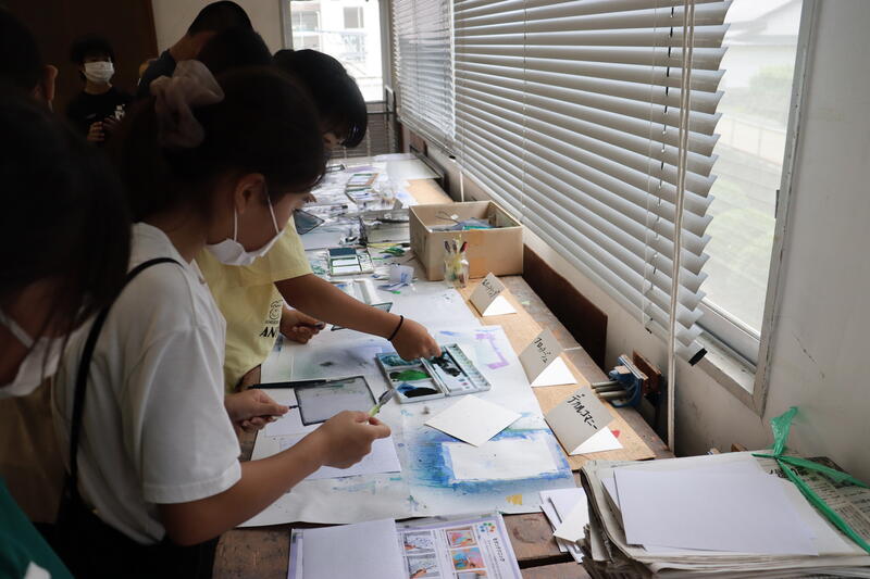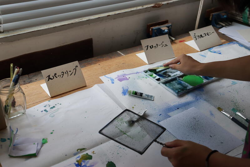 子供たちは、意図的、または偶然にできた模様を楽しみ、発想を広げて思い思いの作品に仕上げていました。