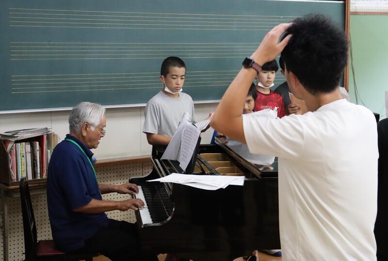 音楽祭では、校歌(一勝地小、渡小)と「ふるさと」という曲を披露します。