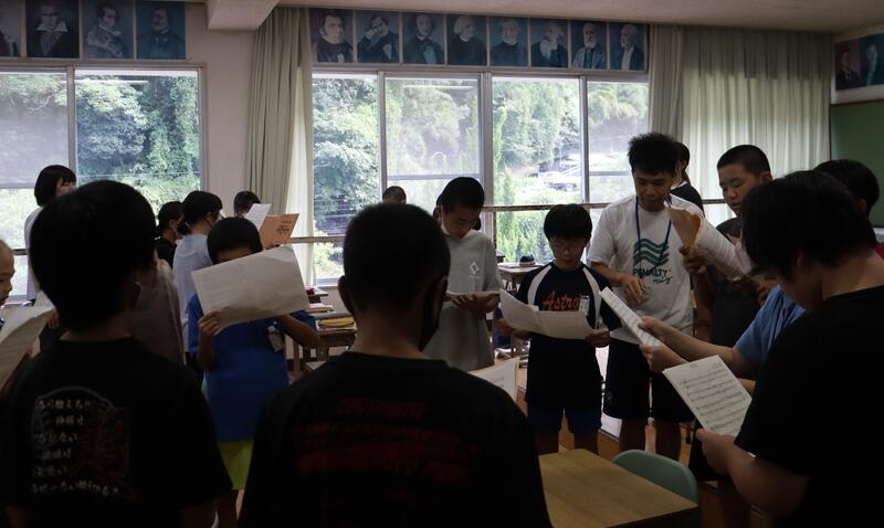 球磨中学校の岩本先生に歌唱指導をお世話になりました。思いの伝わる表現目指して練習を重ねていきます。