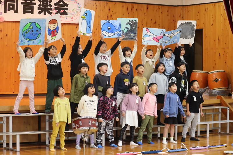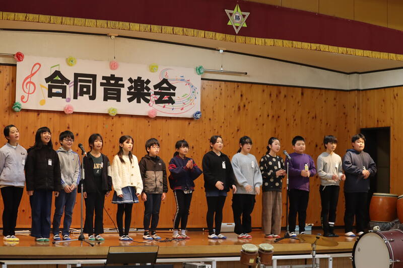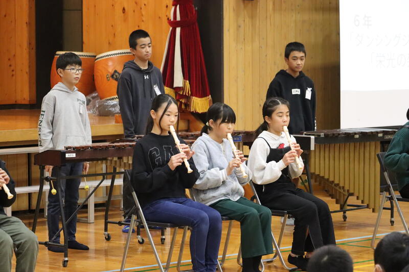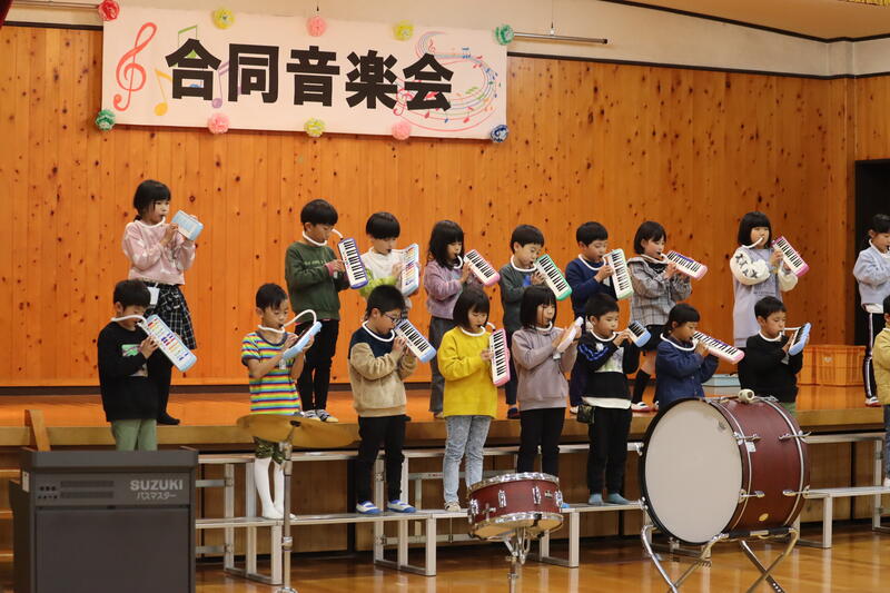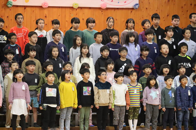2校の児童がそれぞれの学年で一緒になって、合奏や合唱の練習に励んできた成果を来賓の方や保護者・地域の方に披露しました。