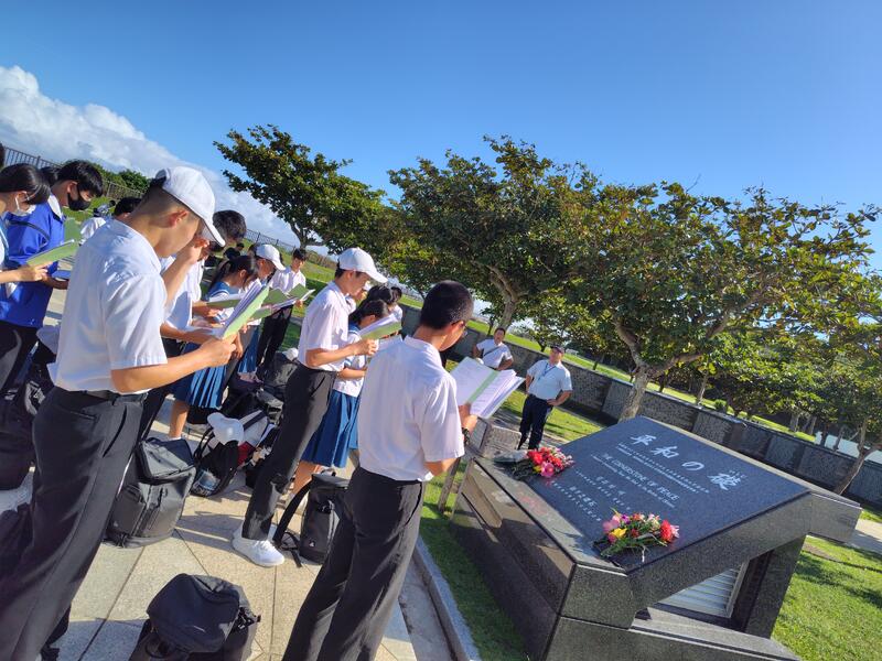 平和祈念資料館を見学した後、平和の礎を前に平和集会を行いました。