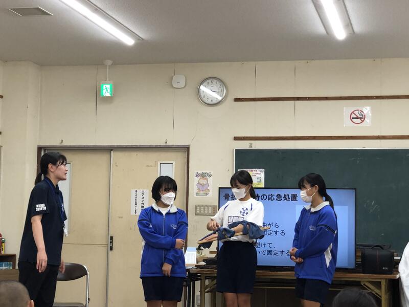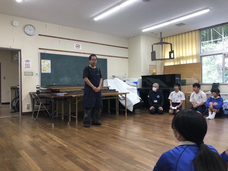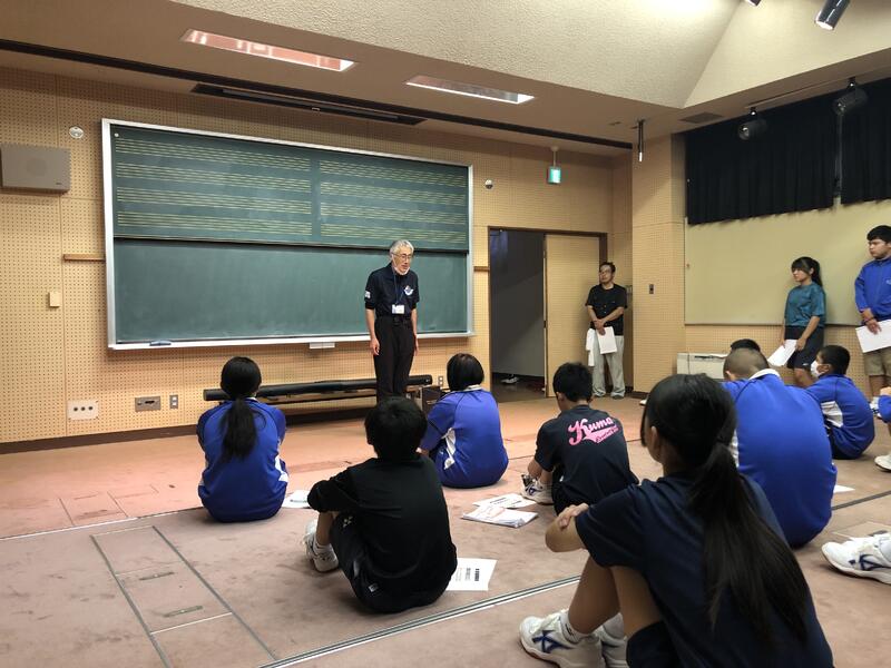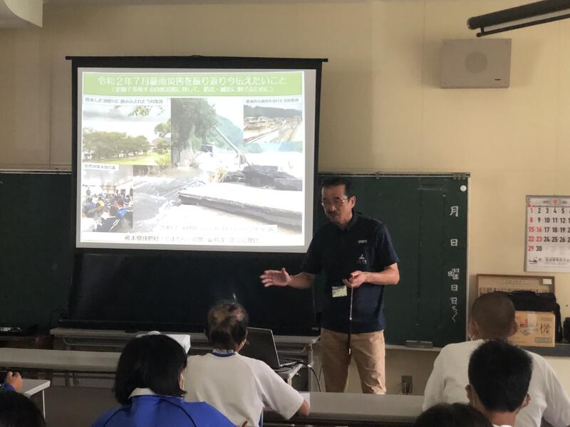 入所式を終え、現在、村役場総務課防災管理官の中渡さんの防災講話です。