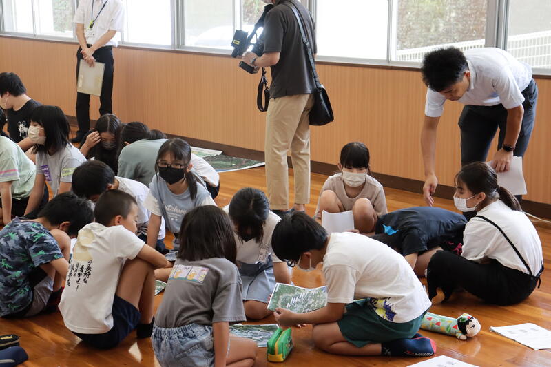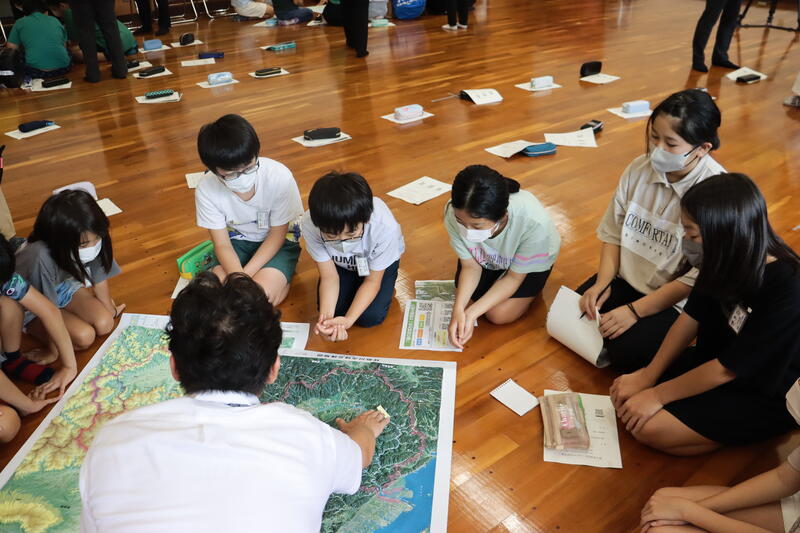 授業では、復興局の方々が、緑の流域治水について動画や立体地図などを使って子供たちに分かりやすく説明してくださいました。