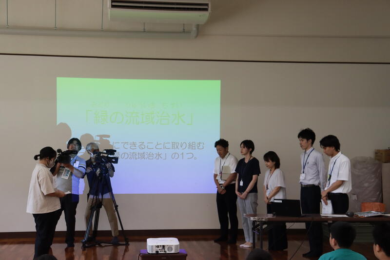8月29日(火)の3校時、渡小と一勝地小の4・5・6年生が、熊本県球磨川流域復興局の主催する「緑の流域治水」についての出前授業に参加しました。