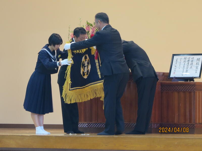 4月8日(月)には、熊本県教育長白石伸一様をはじめ、多数の来賓にご臨席を賜り、開校式、就任式・始業式、7年生進級式を行いました。