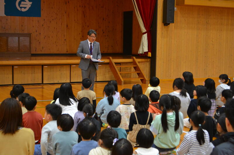 入所式を終え、現在、村役場総務課防災管理官の中渡さんの防災講話です。