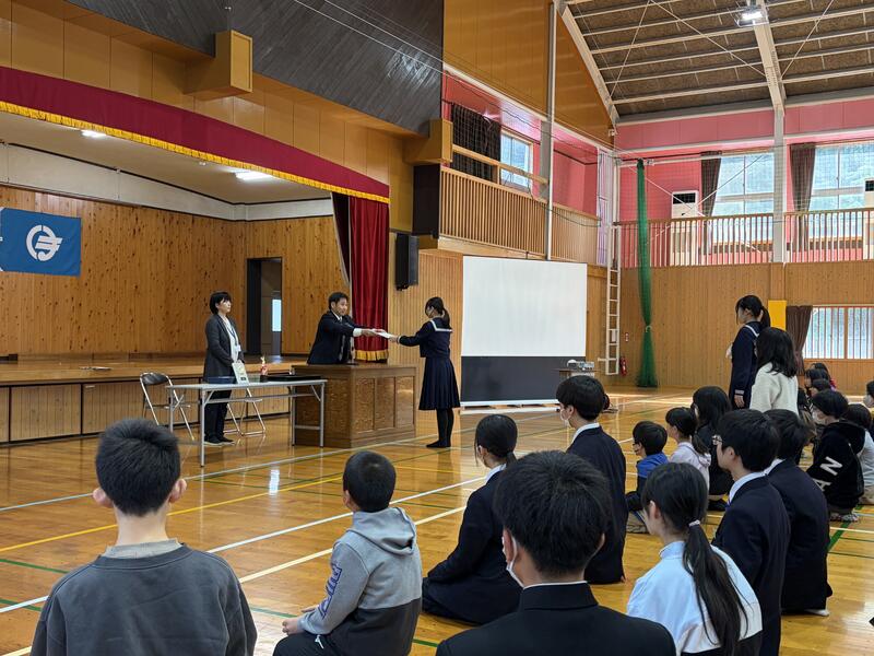 式前に各種表彰を行い、式の中では、代表の児童生徒の発表がありました。成長を語る姿も大変頼もしかったです。