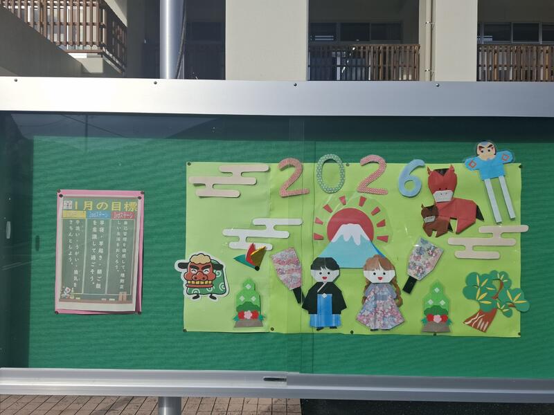 1月の掲示板 投稿日時 : 14:46 学校サイト管理者 令和8年となり、北校舎、南校舎それぞれで掲示板の装いが変わりました。午年や正月にちなんだ掲示物を準備してもらい、趣向を凝らした内容となっております。ぜひ、ご覧ください。