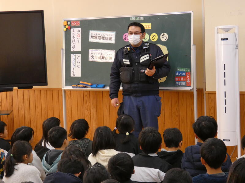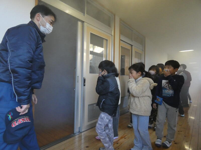 1月14日(水)に地震火災避難訓練が実施されました。今回、北校舎では休み時間に大きな地震があり、それをきっかけにして火災が起きてしまうという想定で行いました。下球磨消防署西分署から消防士の方々にも来ていただき、ご指導いただきました。更に、煙体験も実施していただき、煙が起こるとどれだけ前が見えなくなるのか体験しました。
