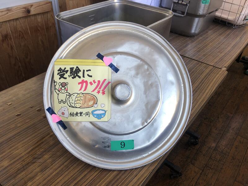 また、9年生のトンカツの入れ物の蓋には、調理員さんからの心強いメッセージが‼︎