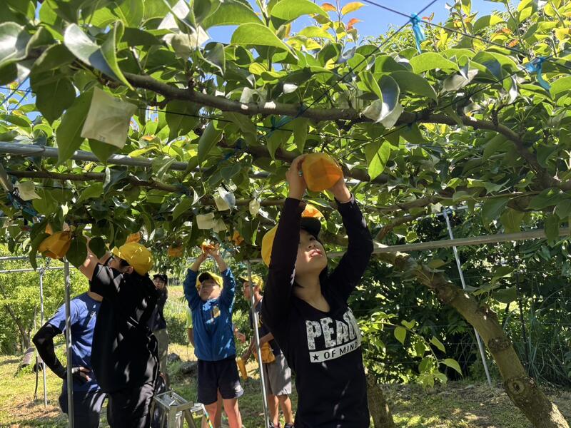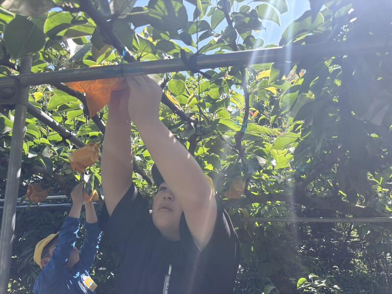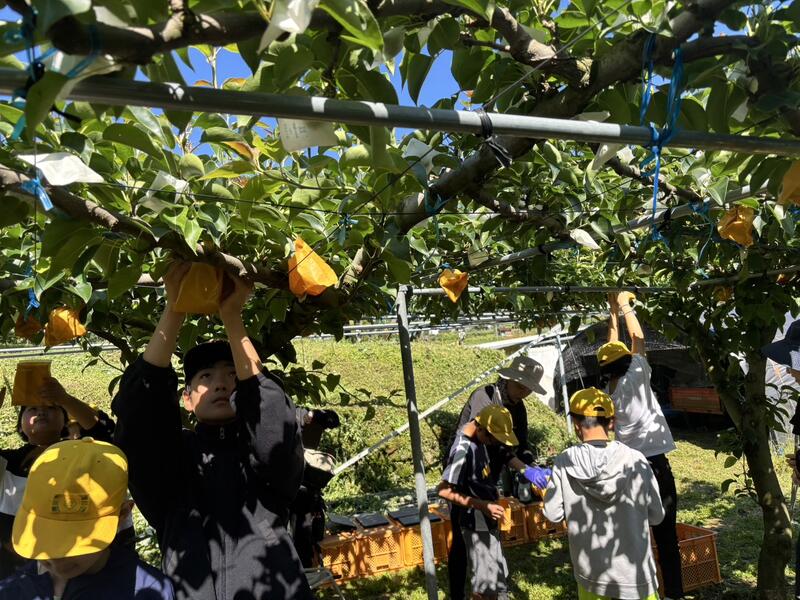 6月4日(水)に6年生が毎床選果場で梨の袋掛け体験を行いました。この体験は総合的な学習の一環として、球磨村の特産品である梨の袋掛け体験を行うことで、球磨村について理解を深めることを目的としています。児童も奮闘しながら、体験していました。