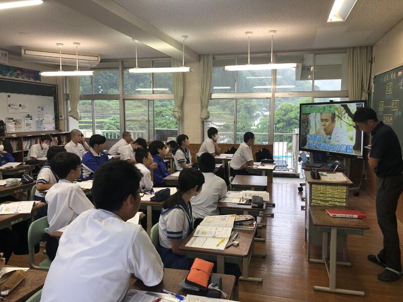 6月12日(木)に4年生の総合的な学習の時間の一環で、球磨村高齢者生活福祉センターせせらぎより出前授業に来ていただきました。地域の暮らしや福祉活動について、実際に携わる方々からお話を伺い、貴重な学びの時間となりました。次回の授業では、車椅子体験等を行います。