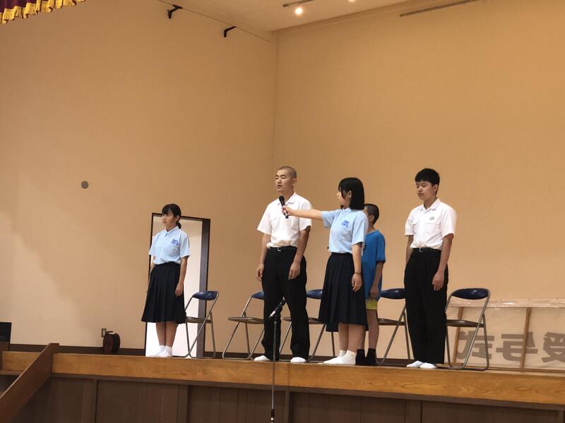 1年生から9年生までの児童生徒全員で、大会に臨む選手を激励しました。