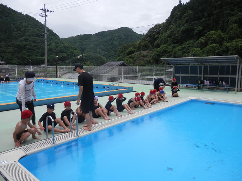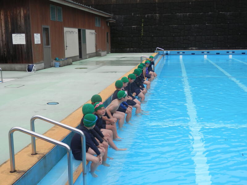 6月11日(水)の3校時に曇天のもと、1・3年生のプール開きが行われました。子どもたちは朝から天気を心配していましたが、どうにか、開催することができました。1年生にとっては、初めてのプール。3年生にとっては、初めての大プール。これからどんどん挑戦してほしいです。
