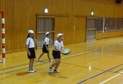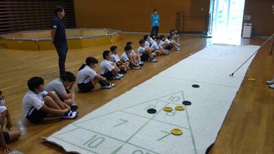 午前中はニュースポーツを楽しんでいます。ルールを教えていただいたのは、以前球磨中学校におられた国武先生でした。