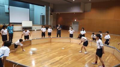 枠内での転がしドッヂボールですが、力任せでは上手くいかず、意外に難しいようです。ポイントは、枠内でのルールを上手く活用することと力加減のようです。白熱の勝負が続いています!