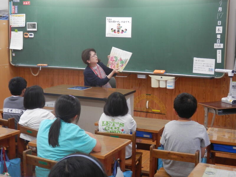 7月17日(木)に1学期最後のちびくまさんの本の読み聞かせがありました。地域の方は、担当する学年の子供たちが喜んでくれるような本を思い思いに選んでいただき、豊かな表情で、丁寧に読み聞かせをしていただきました。子供たちは嬉しそうに読み聞かせを聞くことができました。