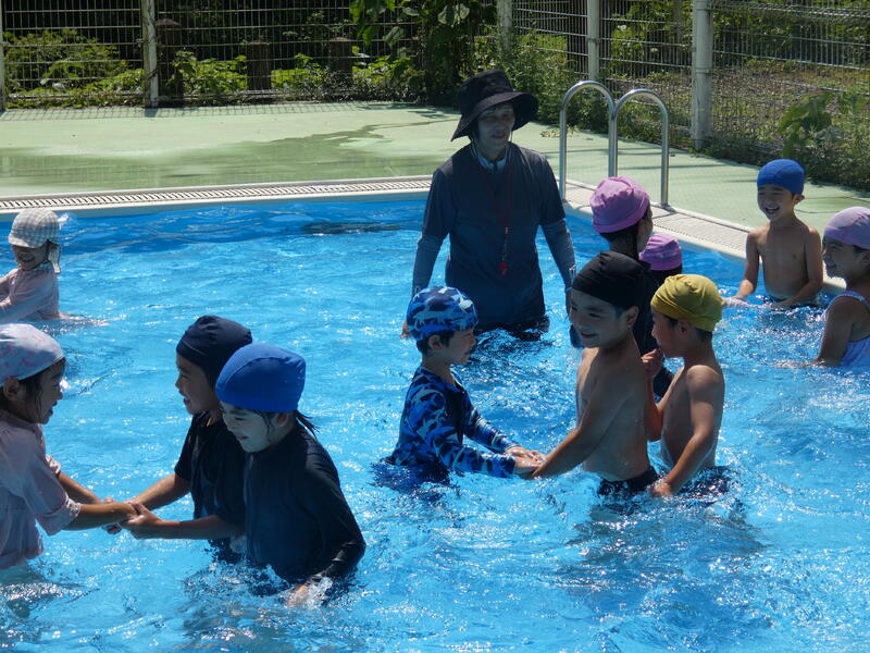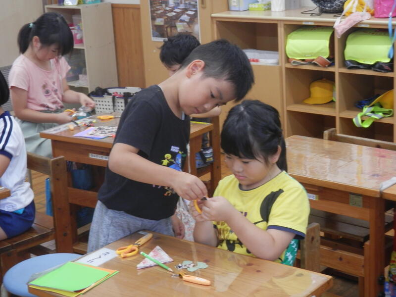 7月17日(木)に本校の1年生と来年度本校に入学予定の保育園児が図工と体育で交流授業が実施されました。図工では、はさみとのりを使って、飾り物の作成を行いました。1年生が保育園児に丁寧に教えながら作品を作成しました。体育では、学園の小プールに挑戦しました。すてきな交流授業となりました。