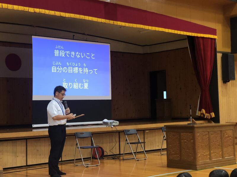 児童生徒代表3人が、頑張ったことと夏休みの計画を発表しました。