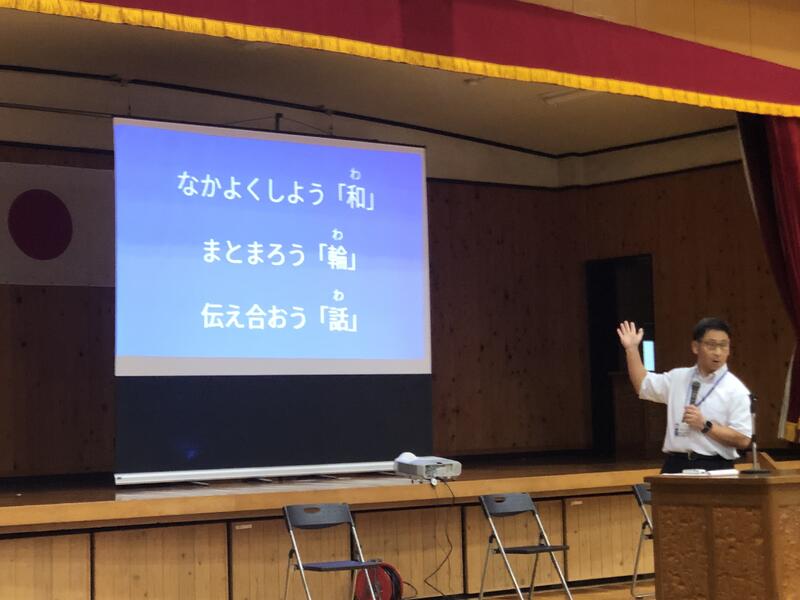 話の中で、昨年度から受け継がれる「3つの『わ』」を今後も大事にし、「相手思いの心」をもっと大切にしてほしいことを伝えられました。