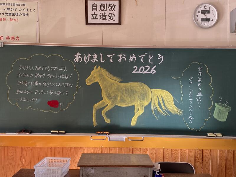 朝、教室を回ると、子供たちを迎える素敵なメッセージが各教室の黒板に残してありました。
