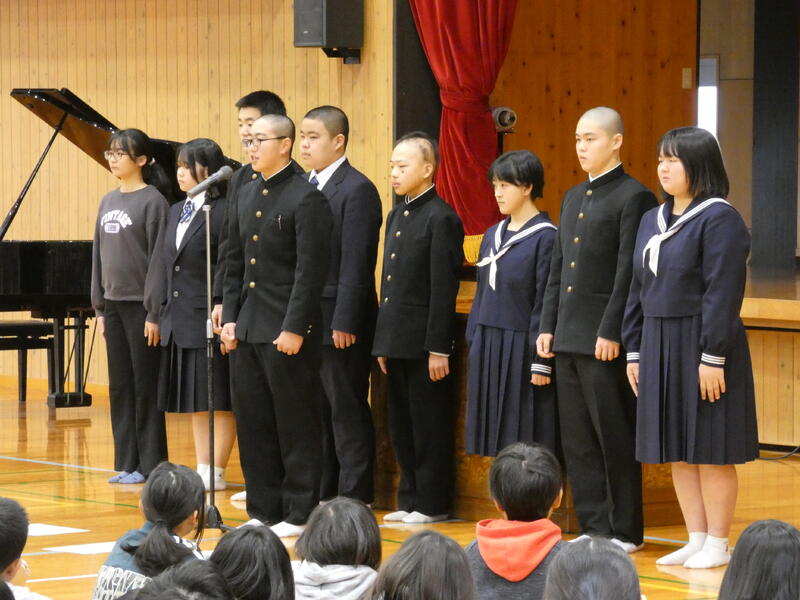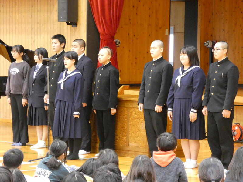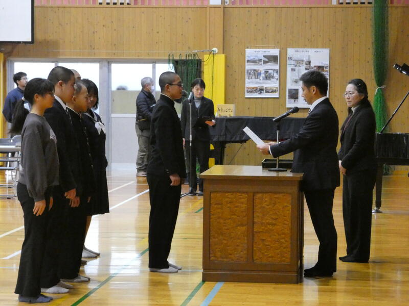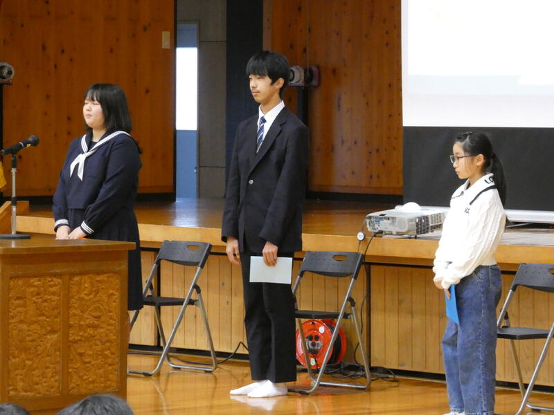 令和8年1月8日(木)に児童生徒会委嘱状交付が実施されました。旧生徒会へは感謝状を渡し、新生徒会には委嘱状が交付されました。旧生徒会と新生徒会のそれぞれの会長からは話をしてもらいました。旧生徒会は本当に本校のためにしっかりとがんばってくれました。新生徒会はその思いを引き継いでがんばってほしいと思います。