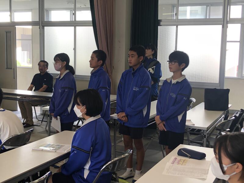 現在、出発式を行い、スクールバスで研修①の現地視察に来ています。