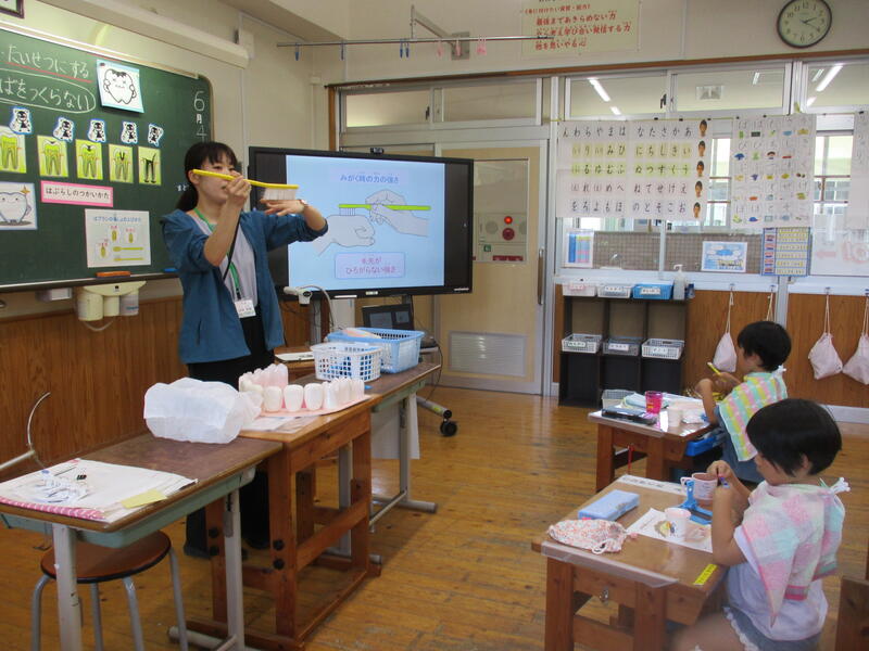 1年生で歯みがき指導が行われました