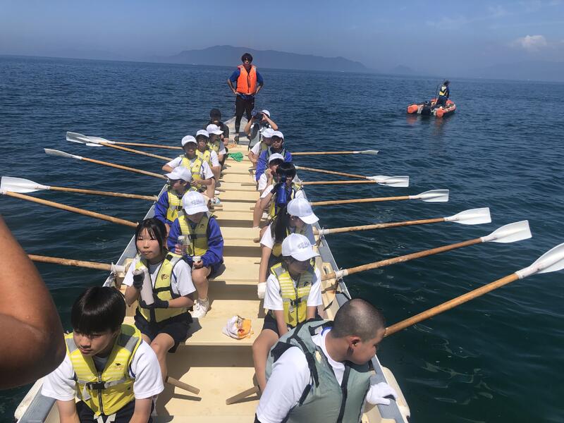 幸運にも海がとても穏やかでしたので、楽しく協力して艇を進めることができました。所員の方々にも褒めていただきながらの活動でしたので、子供たちはきつかったでしょうが、気分は最高だったと思います!