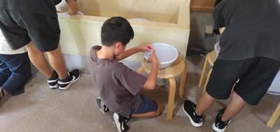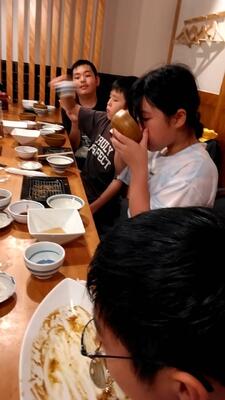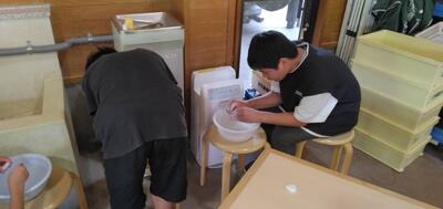 奥の班は、まだ届いていないようでうらやましそうに見ています。