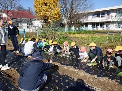 令和7年11月28日(金)に久米保育園のタマネギ苗植えの手伝いを行いました。