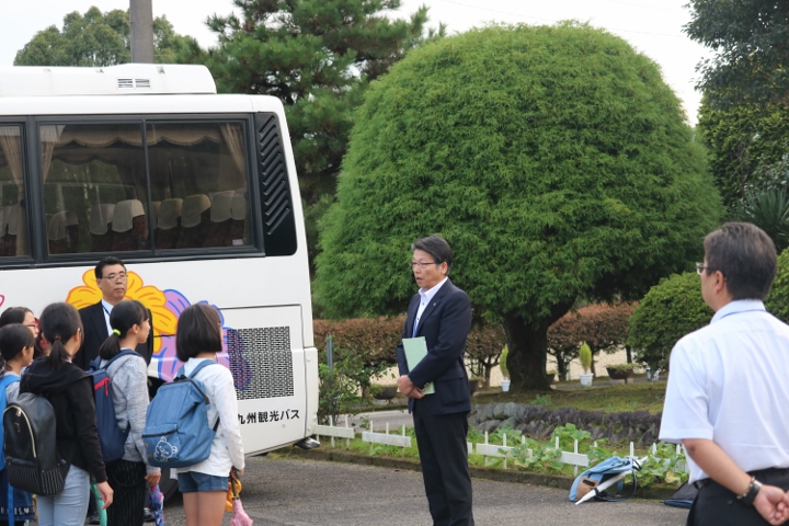 10月5日木曜日午前7時から6年生修学旅行の出発式が行われました。今日と明日の2日間で佐賀県と長崎県の歴史的施設等を見て学習します。この2日間を有意義に過ごしてほしいです。久米小学校到着は、10月6日金曜日午後6時30分、解散が午6後時40分の予定です。
